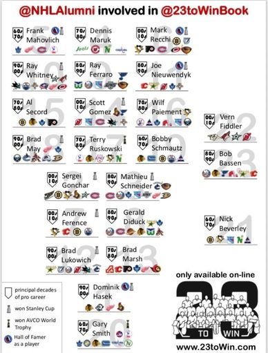 It Takes 23 to Win is a one-of-a-kind, large format book that features 23 retired NHL players from the 1960s to the present, who assemble 23-man rosters of former teammates to compete in a fantasy playoff. Players provide candid, first-person stories and insight about competing to win with these teammates.
